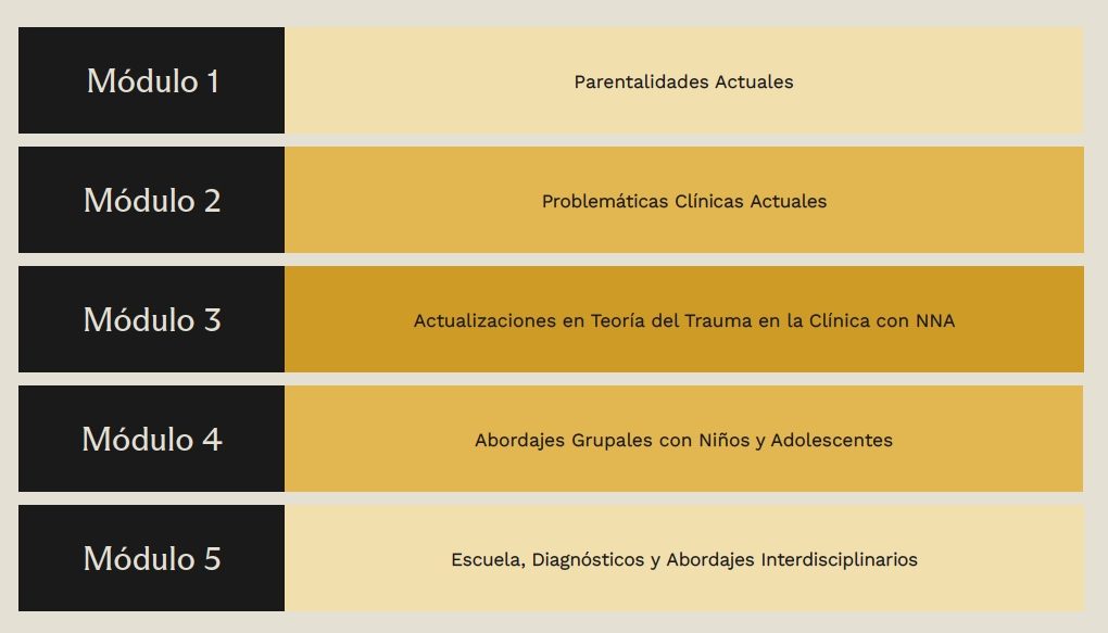 El diplomado tiene una estructura curricular que abarca los ejes esenciales de la clínica con niños, niñas y adolescentes: