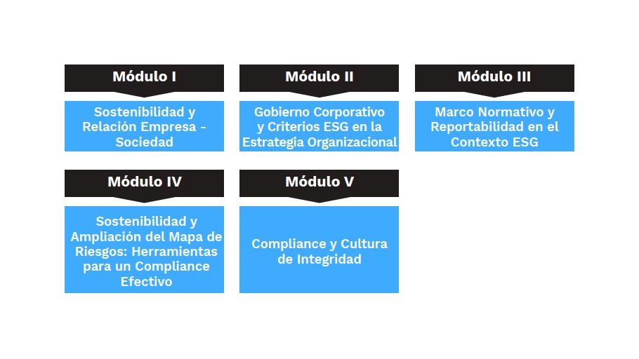 Este programa se distingue de la oferta nacional al integrar la sostenibilidad y el cumplimiento. Los criterios que hoy dominan las decisiones de grandes y pequeños inversionistas son los relativos a medioambiente, sociales y de gobernanza, estructurados bajo lamirada de ESG (ASG). Este diplomado se centra en la entrega de nociones generales y herramientas concretas para lograr esa esperada y exitosa sinergia entre la gestión de ESG, junto a un adecuado programa de Compliance de manera de asegurar la supervivencia de la empresa y de las organizaciones en general. Las organizaciones y sus gobiernos corporativos están cada vez más exigidas en términos de transparencia y rendición de cuentas. Entre otros, es fundamental que las instituciones, sean éstas públicas o privadas, entren en la lógica de derribar paradigmas tradicionales y profundamente arraigados en la gestión organizacional. Sin lugar a duda, quien no asuma el desafío de exigir un desempeño con integridad a las empresas, quien no tome en serio la observancia de los estándares nacionales e internacionales en materia de riesgos ESG, corre serio riesgo de quedarse fuera del mercado. Siendo un elemento central para el buen funcionamiento de un gobierno corporativo, el manejo adecuado de los programas de cumplimiento termina siendo la forma en que las organizaciones y sus gobiernos corporativos puedan asegurar la sostenibilidad de las compañías en el largo plazoriba el valor diferenciador del programa.