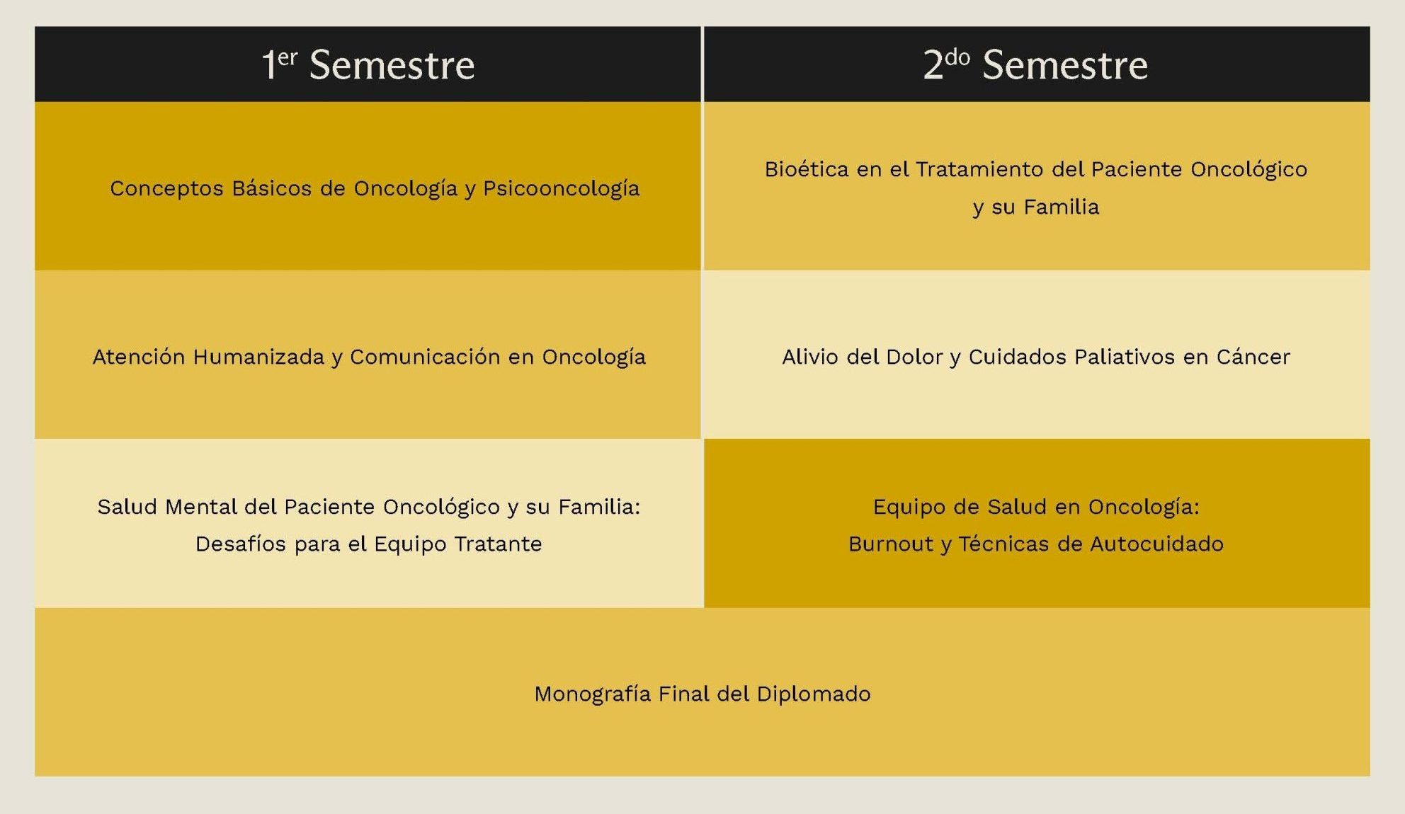 El Diplomado en Psicooncología para profesionales de la salud busca ampliar la mirada técnica y biomédica del rol del equipo de salud en el tratamiento oncológico, dando una aproximación a los aspectos médicos, siendo el tema principal los fundamentos de la Psicooncología (tomando en cuenta el rango etario de los pacientes), desde un abordaje humanizado e integral en cada fase del tratamiento biopsicosocial del paciente: Diagnóstico, Tratamiento Activo (quimioterapia, cirugía y/o radioterapia, entre otros), Seguimiento (término del tratamiento activo sin presencia de células cancerígenas), Recidiva (cuando la enfermedad vuelve a aparecer) y Cuidados Paliativos (estadios avanzados de la enfermedad o cuando el tratamiento oncológico no es curativo, sino que se enfoca en el alivio de síntomas asociados a los tratamientos y/o enfermedad y en preparar para un buen morir).