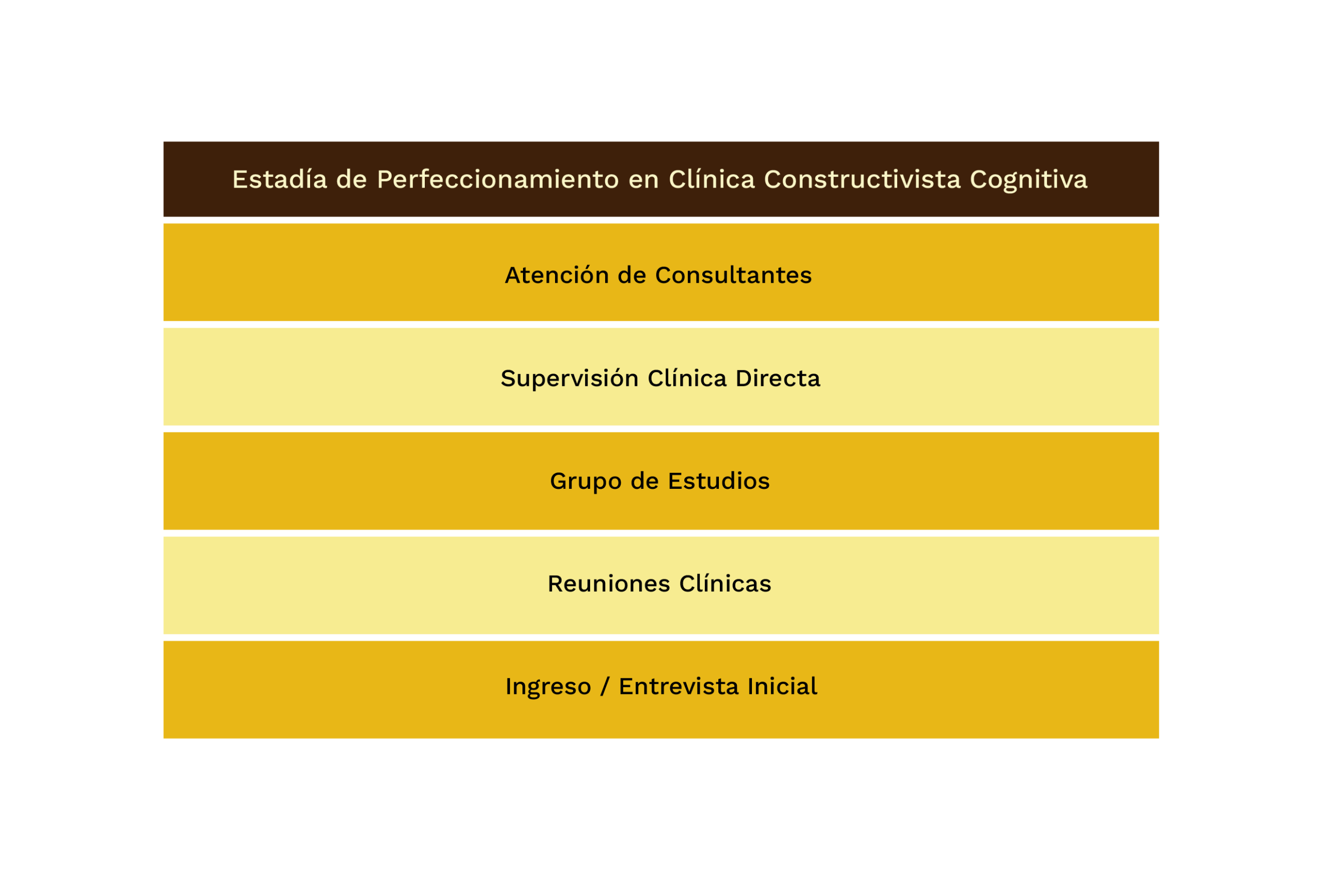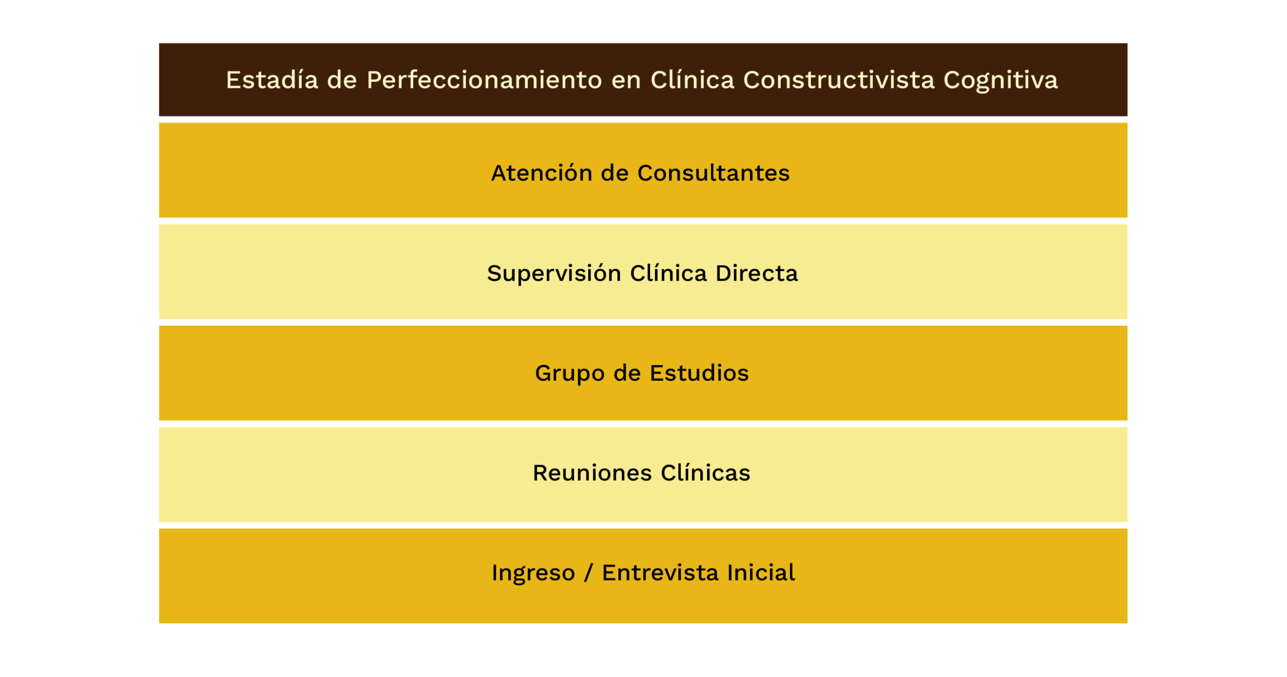 La Estadía de Perfeccionamiento en Clínica Constructivista Cognitiva con adultos cuenta con un total de 22 SCT y tiene un carácter anual desde Abril hasta enero del año siguiente.