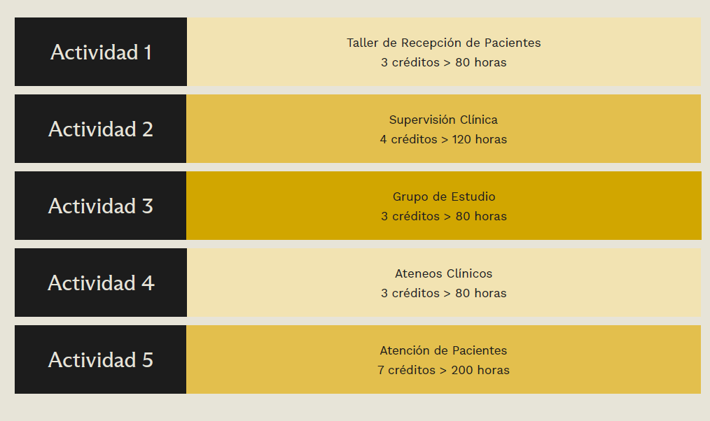 Durante la estadía de perfeccionamiento en clínica psicoanalítica con adultos el pasante se insertará en un equipo profesional interdisciplinario, participando además de todas las actividades formativas y de extensión de la Clínica Psicológica.