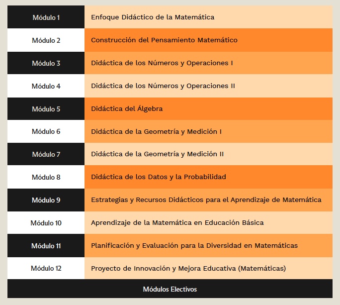 Lo distintivo de este Postítulo es la propuesta de tener como eje articulador la Ingeniería Didáctica (M. Artigue) y la Teoría de situaciones didácticas (G. Brousseau). En esta línea cada curso incorporará los Talleres Proyecto de innovación y mejora (PIM): son talleres aplicados en todos los cursos donde se intenciona de forma explícita algunas de las fases de la Ingeniería didáctica.